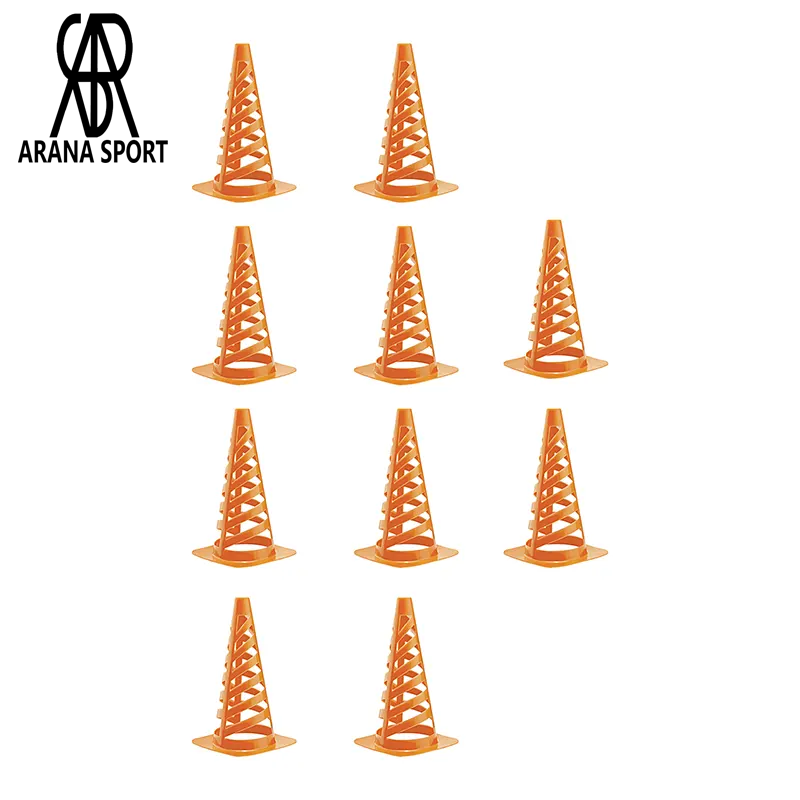مانع تمرین فوتبال مخروطی 30 سانتیمتری شیاردار ژله ای بسته 10عددی | ارنا اسپورتر