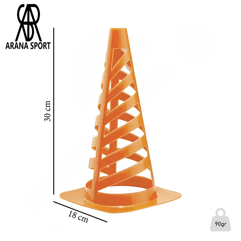ارتفاع ۳۰ سانتیمتری این مخروطها نسبت به مدلهای کوتاهتر، امکان طراحی تمرینات پیشرفتهتر را فراهم میکند. طراحی شیاردار بدنه نیز باعث افزایش اصطکاک با سطح زمین شده و از لغزش مانع در حین تمرین جلوگیری میکند. این موضوع به اجرای دقیقتر تمرینات و حفظ نظم در چیدمان موانع کمک مینماید.